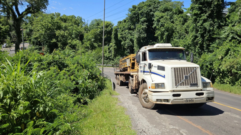 Caminhão não vence subida na Rua Vale das Palmeiras, em Ivoti